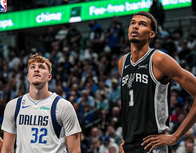 独行侠这套阵容平均身高惊人,场上最矮的汤普森也有2米,堪称巨人阵容。华盛顿被放在三号位,目的明确:应对马刺同样高大的首发阵容。马刺的首发同样不遑多让。2米卡斯尔担任控卫,与瓦塞尔搭档后场,侧翼是尚帕尼,内线则由巴恩斯和文班亚马组成。文班亚马的存在让马刺的阵容高度优势尤为突出,他的身高和臂展几乎无人能敌。独行侠试图以高大阵容对抗,但文班亚马的统治力让他们始料未及。