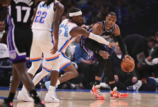 北京时间10月29日,NBA常规赛继续进行,雷霆坐镇主场迎击国王队。本场比赛之前,雷霆战绩4胜0负,稳居西部第一,卫冕冠军确实是厉害,二当家杰威还没复出的情况下,开局就能打出这么强势的统治力,阵容深度太厚实了,进攻防守都是顶级的同时,内线外线也兼备。另一边的国王队,1胜2负暂列西部第11,其实国王队的阵容还是相当豪华的,队内多名球员都有全明星水准。不过这支国王,总给人一种位强队的感觉,因为他们这几个球星都很普通,没有一个明确的绝对核心,并且阵容结构也不行,后卫实在太多了,还签下了威少。