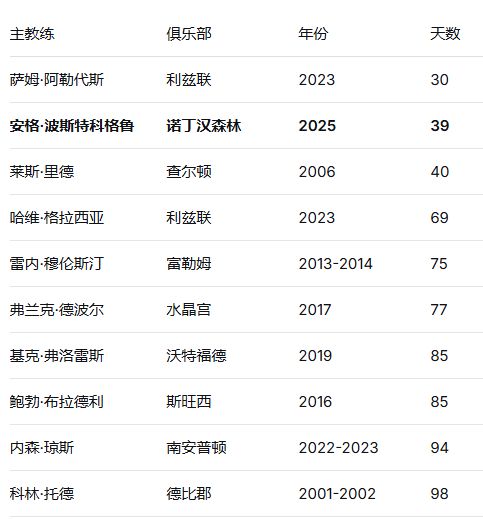 39天,0胜,20个失球,联赛第17位的阴影……这些冰冷的数据宣告了森林队史上最短命主帅的诞生。