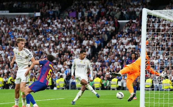但是仅仅几分钟后,巴塞罗那后场防守又出现了严重的问题,米利唐头球摆渡到中路,贝林厄姆门前轻松推射破门,2:1!皇马再次取得比分领先。